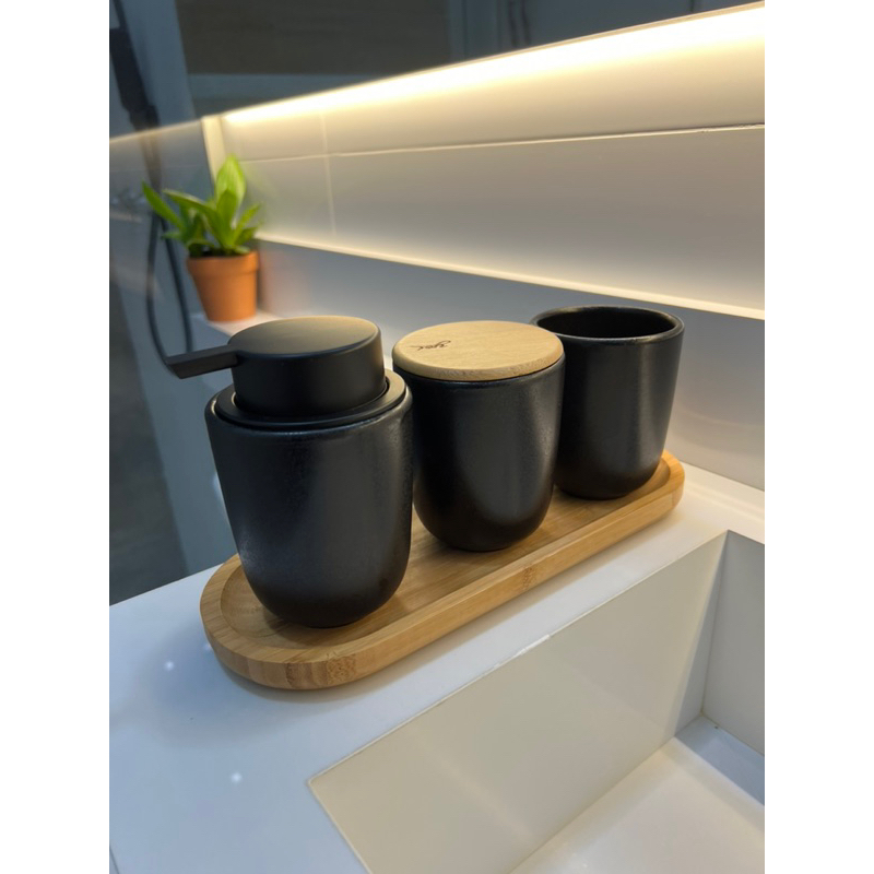 Kit banheiro lavabo 4 peças dispenser porta escova porta algodão e bandeja acessórios de banheiro