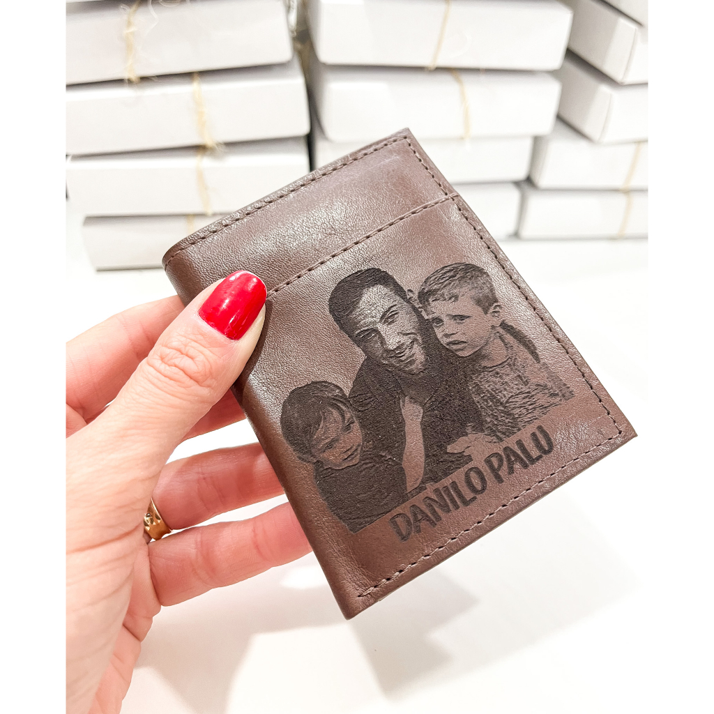 Carteira Masculina em Couro Slim Marrom Personalizada C/ Foto