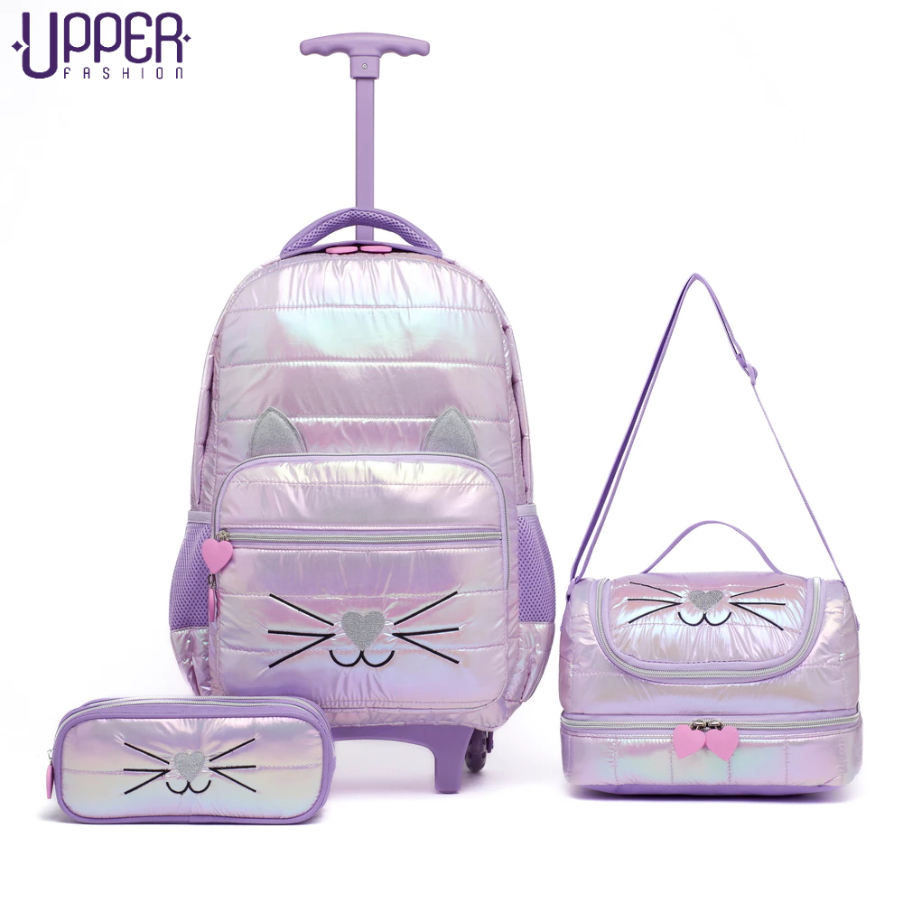 Kit Mochila Rodinha Infantil Resistente Lancheira e Estojo Escolar