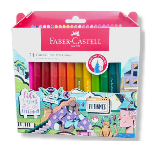 Caneta Fine Pen 24 Cores Faber Castell 0.4mm C/ Estojo